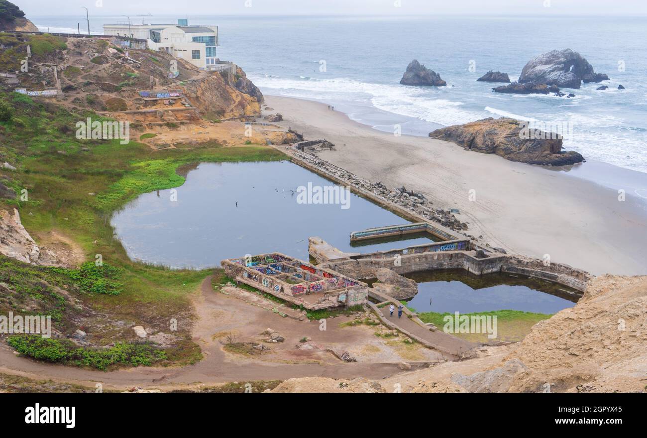 Lands End Park By Sutro Baths Ruins Cliffs With Pacific Cypress Trees And Pacific Ocean In Background San Francisco Ca Stock Image Image Of Attraction Landscape 184946093
